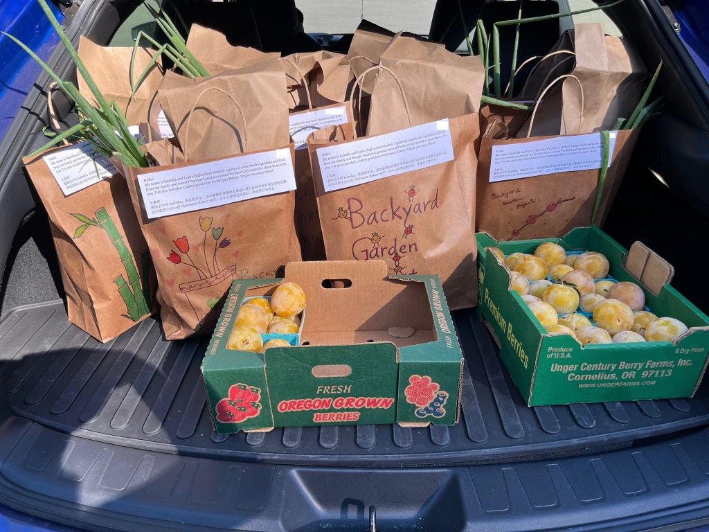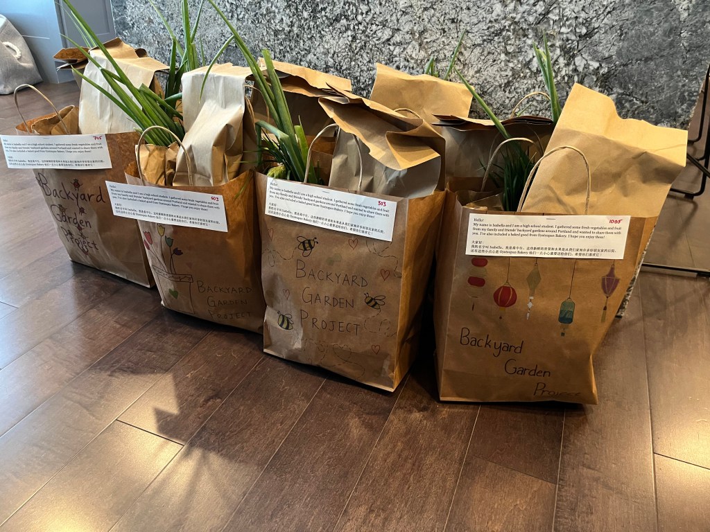 We donate any fruits and vegetables from home gardens. Past produce donated includes zucchini, tomatoes, eggplant, green onions, and garlic chives.